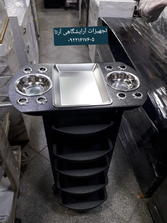 ترولی سینی استیل ۵ کشو فلزی در دورنگ سفید و مشکی