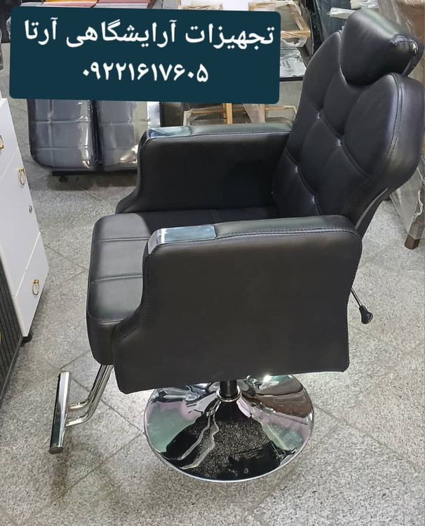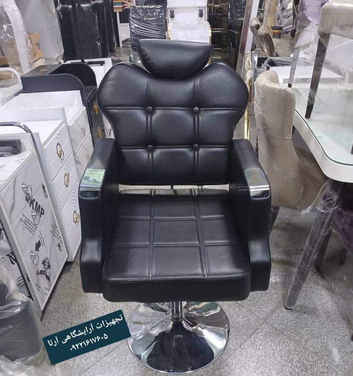صندلی آرایشگاهی مدل گلایل پایه سینی دارای جک دستی جهت تنظیم ارتفاع نشیمن فوم سرد روکش چرم بسیار باکیفیت و شرکتی
