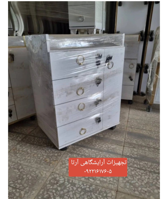ترولی چوبی ۴ کشو یک درب قفلدار