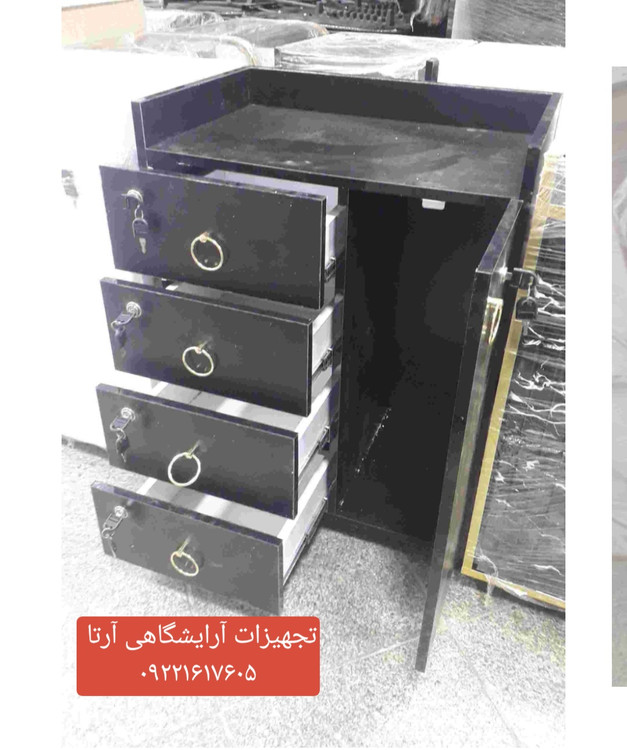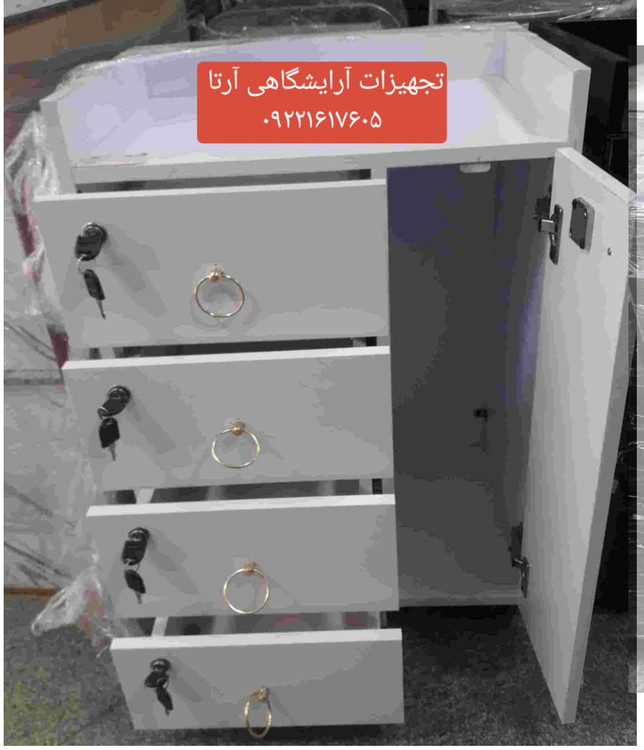 ترولی چوبی ۴ کشو یه درب قفلدار چرخدار